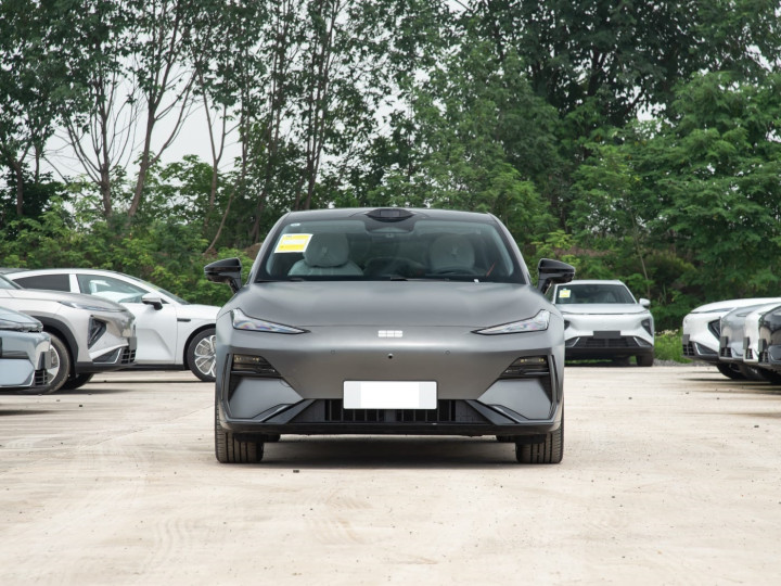 我们首先来看新车的外观设计方面,银河E8专享版的前脸设计堪称纯电时代的视觉符号。封闭式前格栅与分体式全LED灯组构成简约而凌厉的轮廓,独特的贯穿式LED日行灯如剑锋般横贯车头,赋予车辆极高的辨识度。隐藏式门把手与主动式进气格栅细节,将空气动力学优化融入美学形式,降低风阻的同时提升功能效率。车顶前部巧妙集成的激光雷达传感器,以融入式设计避免突兀造型,既预示智能驾驶潜能,又保持了车身线条的整体纯粹感。